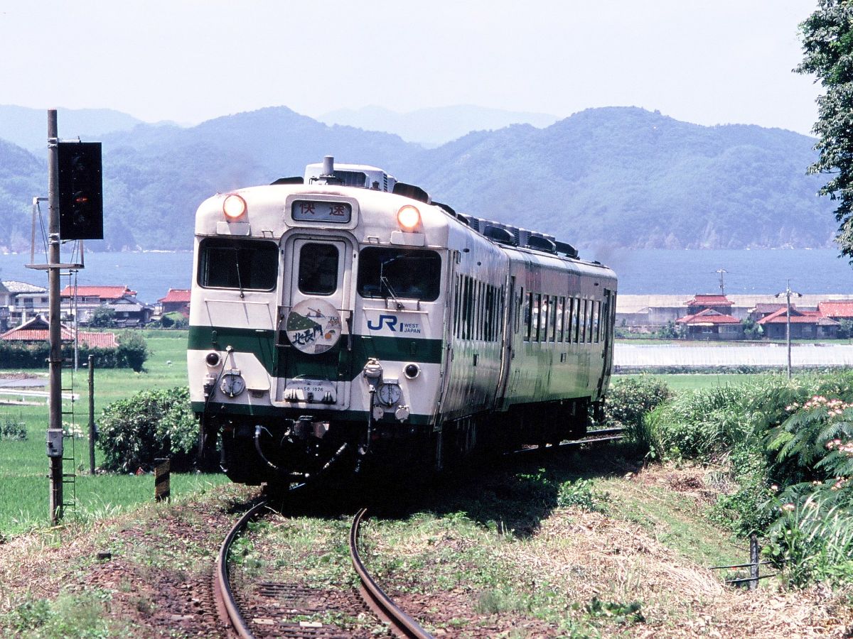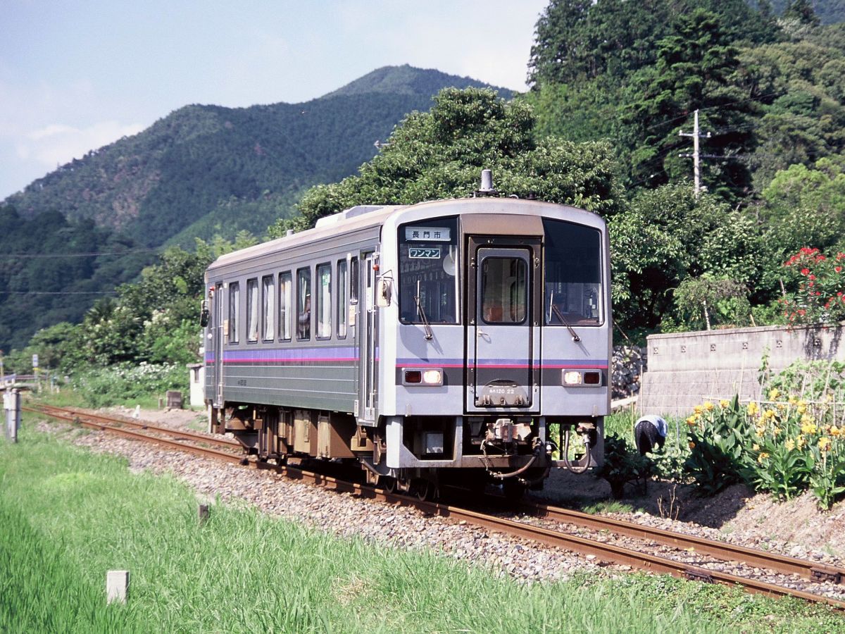 美祢線内の車窓お楽しみが少ないからか、こうした観光ニーズの列車は海の景色が自慢の山陰線内完結の列車にシフト、美祢線自体はキハ120のみのローカル対象路線に戻ってしまいます。沿線には秋吉台という超有名観光地はあるんですが鉄道アクセスは最悪なんで、どうしても車か観光バス利用が中心になるんで、結局ほとんど観光客は取り込めなかったんでしょうね。↓