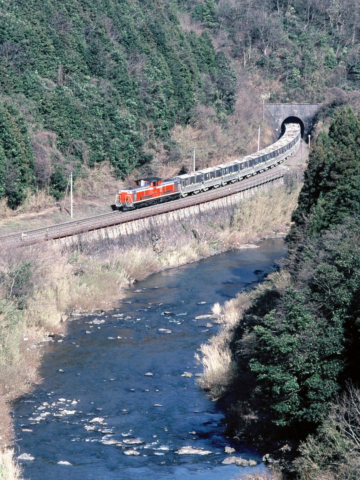 かつては16往復ほど?24時間体制で輸送を組んでいたというんですから驚きですね、国鉄の労使紛争のストでもこの貨物は止めなかったというくらいの、重要列車だったんですよね。。。宇部線にも残る交換駅でのリーチの長さや一部複線区間はこの貨物列車のためだったんです。↓