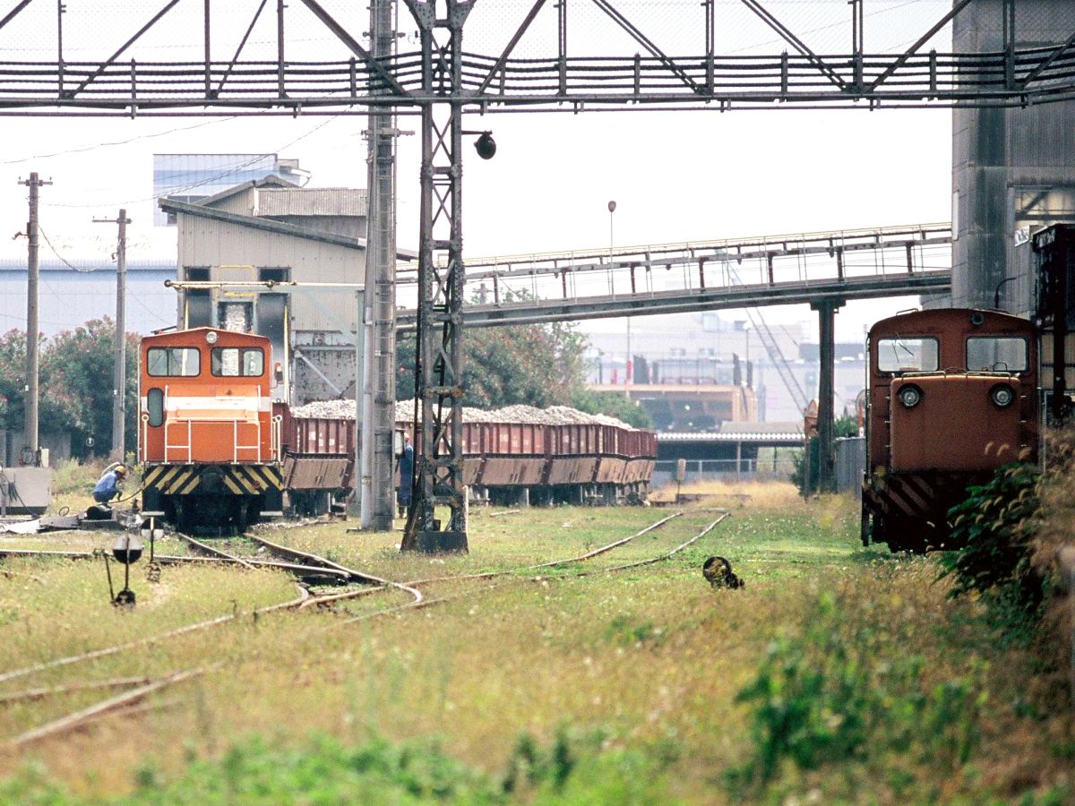 ちなみにこの工場には専用の入換機がいましたね、貨物列車受け取り後、石灰石積み下ろしの入れ換えで使われていました。美祢の伊佐工場のほうも専用線があって、工場から美祢駅の荷受け場まで、専用機が行ったり来たりしてました。詳しくはこちらご参照。↓