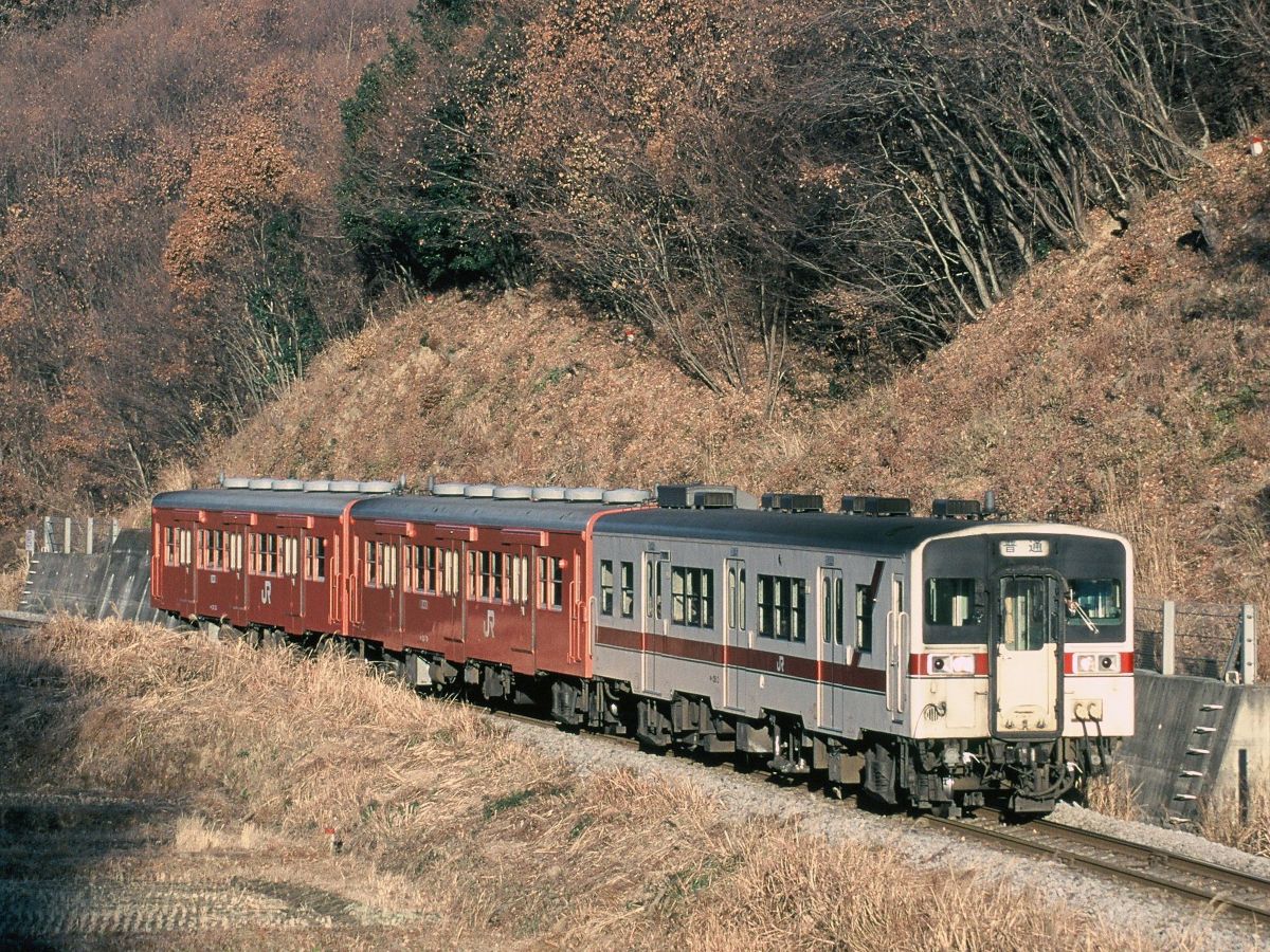 今回は末端部の廃止で揺れる久留里線の懐かし風景ご紹介。国鉄時代はキハ30/35主体で運行、まあ当時の八高線や関東鉄道常総線とかにあった風景だったわけなんですが、あまりに陳腐化してたんで晩年緊縮予算の中でも新車としてキハ37が投入されます(写真 先頭車両)。登場時はタラコ色だったようです。ただし先行試作の要素もあって5両しか製造されず、うち3両が久留里線&木原線(現 いすみ鉄道)専属となってました。↓