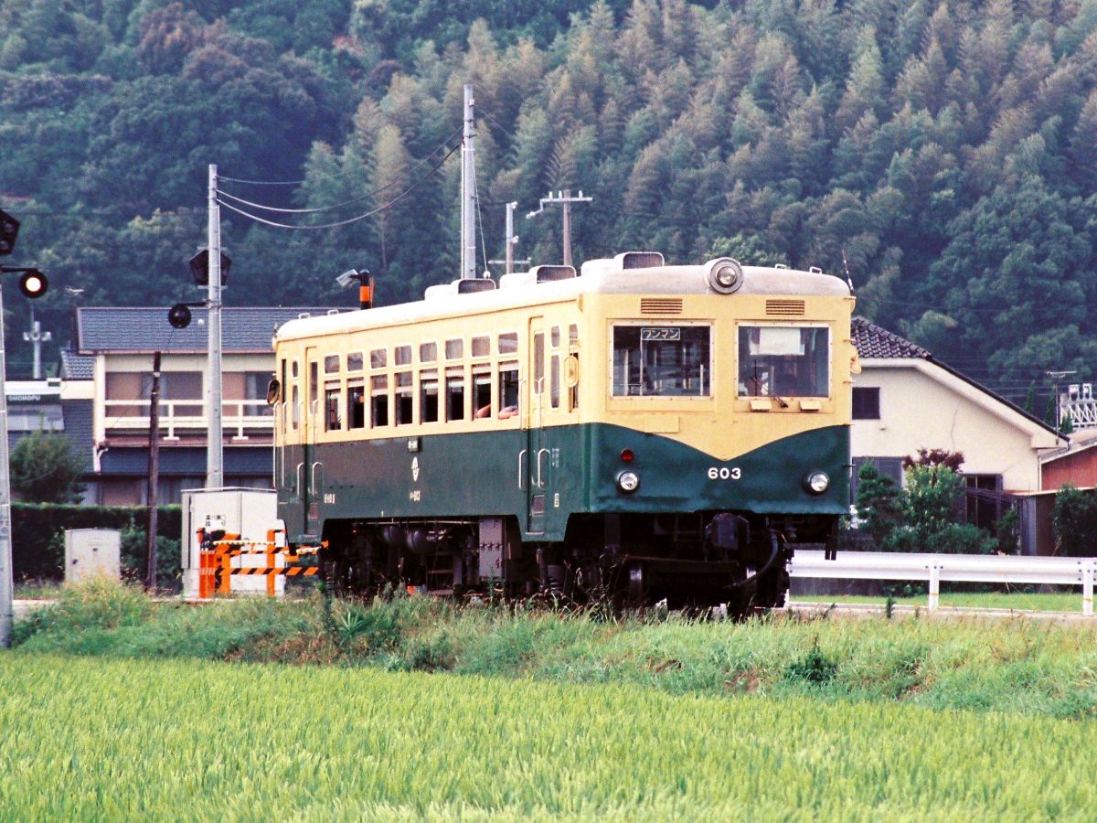 で、キハ600形、大分交通からは2両を譲受。こちらキハ603は最後まで活躍した車両で2009年まで稼働。製造が1960年ということで内燃機関で50年とかなりがんばって使い切りました。大分交通の廃止は1975年、翌年から紀州鉄道での運行ということで、30年超も活躍したんですね・・・↓