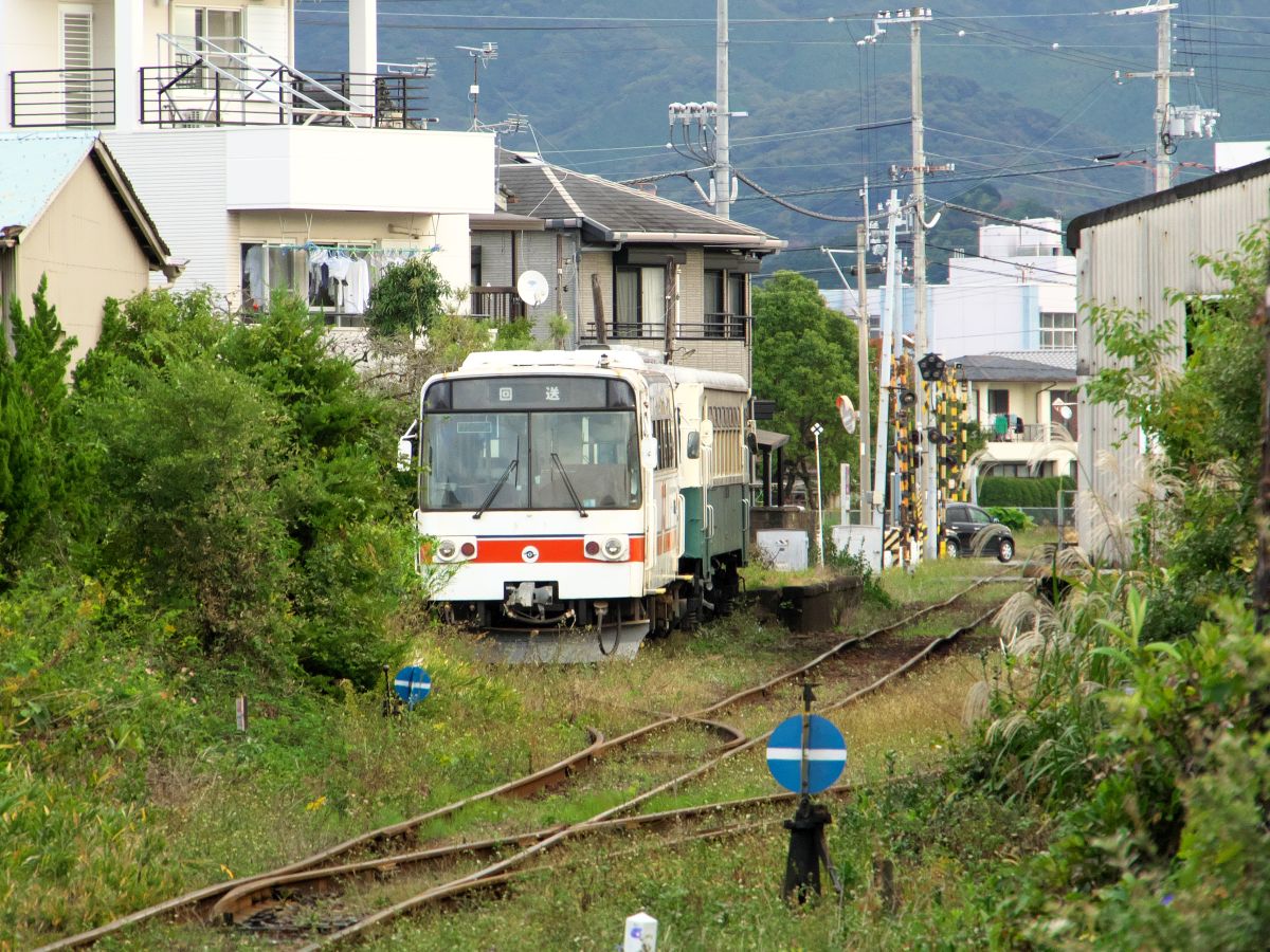 記憶があいまいなんですが、日高川駅ってもともと貨物駅でついで程度の旅客運用があったと。貨物廃止後も慣行でダイヤはそのまま温存となってて1日3往復?だけ発着だったと思います。大半の列車は西御坊駅止まりだったんですが、廃止の理由が見つからなかったのかな?ワンマン運転開始と同時の区間廃止となったようです。ただ日高川駅跡は今も空き地のまま、ずいぶん時間が経ったんですが草むらとなったまま使われてません。まあ、現役時代も廃線跡みたいだったから変わらんけど。↓